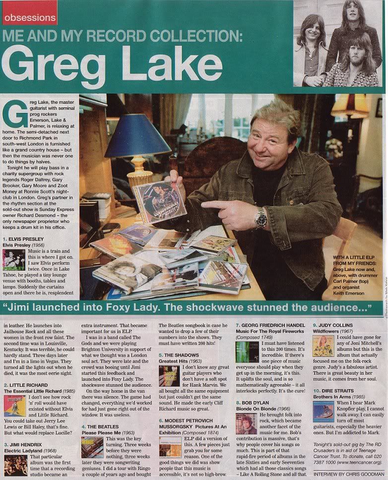(Nov. 2005) Interview with Greg Lake detailing the then-upcoming UK tour.